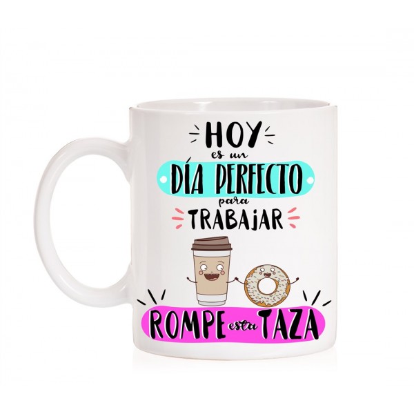 Taza Hoy es un día perfecto para trabajar "Rompe esta taza"